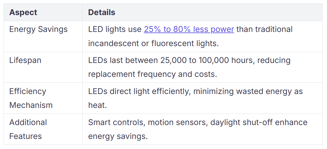 Beralih ke pencahayaan cuaca LED menjimatkan tenaga dan membantu planet ini. Pencahayaan luar LED menggunakan sehingga 80% kuasa kurang daripada mentol lama. Ini menjimatkan wang anda pada bil dan membantu bumi. Banyak lampu LED mempunyai ciri pintar seperti sensor gerakan dan penutupan siang hari. Ciri -ciri ini memastikan pencahayaan LED luar anda hanya berfungsi apabila diperlukan, menjimatkan lebih banyak tenaga.