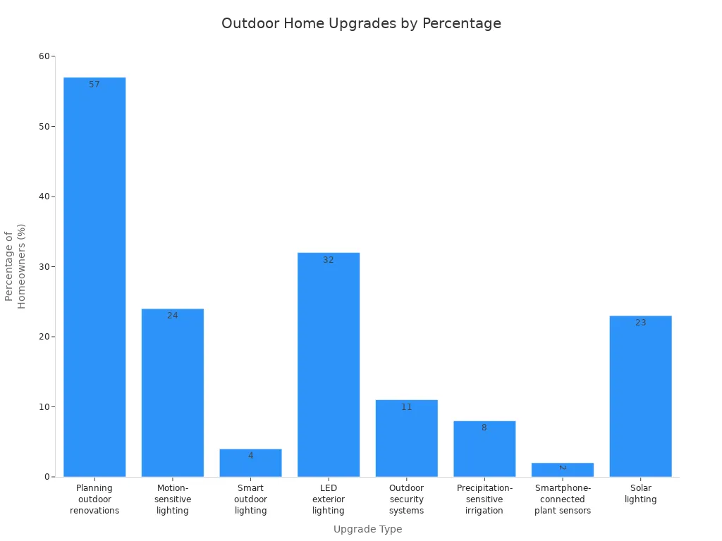 Teknologi pintar menggunakan lampu LED luar lebih mudah. Anda boleh mengawal lampu anda dengan telefon atau suara anda. Banyak sistem yang membolehkan anda menetapkan masa untuk menyala dan mematikan. Ini membantu menjimatkan tenaga dan menjaga rumah anda lebih selamat. Anda juga boleh mengubah bagaimana lampu terang atau berwarna -warni.