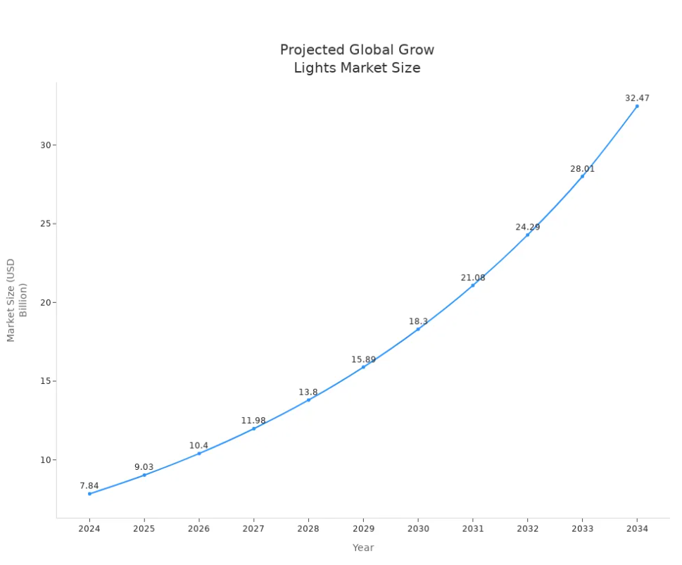 Ya, lampu tegak menegak dapat membantu tumbuh -tumbuhan anda tumbuh lebih baik. Anda lihatPerubahan pesat dalam berkebun dalamanMemandangkan lebih ramai orang mengamalkan lampu maju maju untuk pertumbuhan tumbuhan yang lebih baik. Trend terkini menunjukkan bahawaPertanian menegak di kawasan seperti Amerika Utara dan Asia Pasifikbergantung pada teknologi LED untuk pengeluaran yang cekap, sepanjang tahun. Penyelesaian baru seperti FanXStar VFARM V30 menawarkan kecekapan tenaga dan pilihan yang disesuaikan, menjadikan lampu menegak penting untuk penanam moden.
